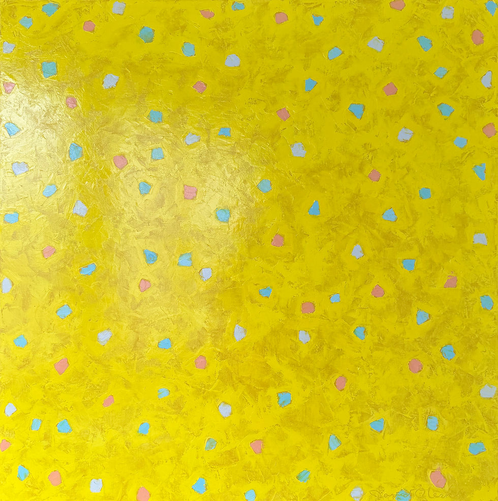 This collection of work represents an ongoing artistic evolution shaped and distilled by the observation of light and color. For a decade, the foundational studies of traditional still-life have opened the door for a departure from the rendition of an actual object; the artists is now exploring how the eye can create a composite understanding of nuances of depth and atmosphere through the substance of paint.  These new paintings start to take on aspects of sculpture. The veils of color stack up like building blocks, creating more depth and atmosphere with each subsequent layer. Light itself becomes something tangible and substantial, a quantifiable material that can be isolated, studied and captured.  How, like the human condition, these transient elements of the shortcomings of human vision are seen as inconsistencies that float weightlessly in the sunlight, like the glare that flashes through the lens of our eye when the sun hits our faces at a certain angle. As we turn, we can barely catch those fleeting flashes of color that are lost and found as transient and fugitive revelations of an unconscious understanding of the spectrum of the light that surrounds us. The afterimages left on the retina become composite elements to the fields of color that hang in space, in the atmosphere, and even in the hanging dust of the afternoon. It’s an odd science of exploration, to peel away the layers of perception to examine the different colors that build up to create these studies of atmosphere. The focus becomes an exploration of the most basic elements of how human vision understands and interprets light and color.  The harsh and simple honesty of observation becomes the foundation of a mechanical formula of execution. What once felt random and loose quickly becomes very controlled and meticulous as the complexity of the surface builds up, creating a carefully woven tapestry of light and color. Layered complementary colors invite the viewer to visualize the triangles of primary colors twisting and turning one way around the color wheel and back again to result in the varying hues and intensities. Two analogous colors would be cancelled out by the complementary color of their sum, blue and green would be crossed by orange and pink, blue and violet would be crossed by yellow and orange, around and around.  As the artist loses his own acknowledgement of the corporeal through this process, the viewer’s own inclination shall also be to find their own path into the paintings.